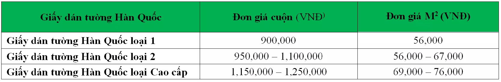 Lưu ý giá sản phẩm trung bình là 3m2