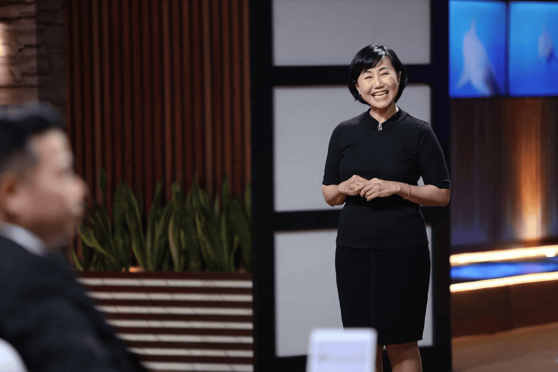 CEO tuổi trung niên Huỳnh Nguyệt Mai lên Shark Tank gọi vốn 1 triệu USD cho 15% cổ phần của công ty Việt Long (Ảnh: Shark Tank Việt Nam).