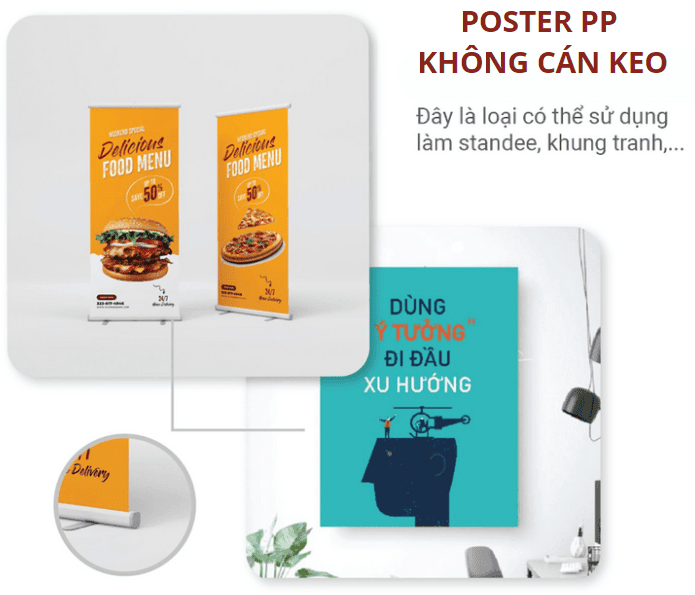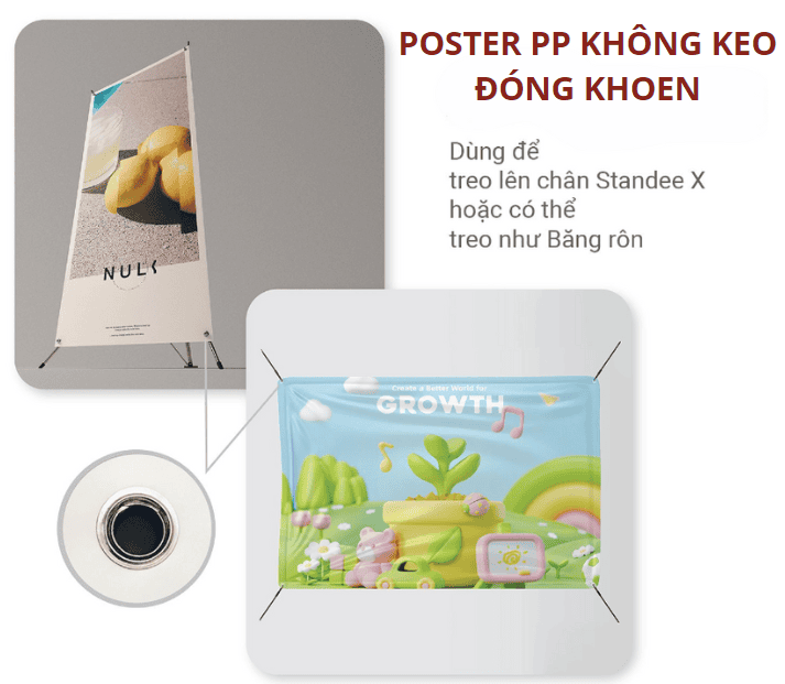 Poster PP thường gắn vào Chân Standee X và Chân Standee cuốn: